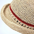 【SALE】ラフィア細編み帽子 セーラーぐるり透かし ナチュラル×赤 @6000→4800