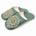 バブーシュ ビーズスパンコール S24青緑xアイボリーxオーロラ