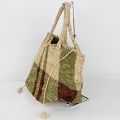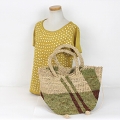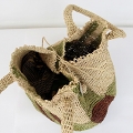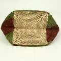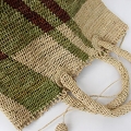 【10%OFF】ラフィアかぎ編みトート ポンポン格子ナチュラルxオリーブ ¥8000→7200