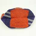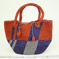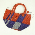 【10%OFF】ラフィアかぎ編みトート ポンポン付き 格子柄 赤茶x紺 ¥8000→7200
