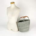 サイザルバッグ共手無地9インチ ハンドル革巻き グレー