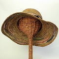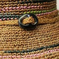 ラフィア細編み帽子 サバンナ つば12広12cm 23茶マルチボーダー