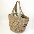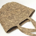 ラフィアかぎ編みトートバッグ バケツ型 チェッカーアジュレ ベージュ
