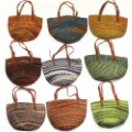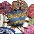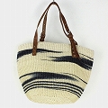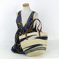 サイザル10インチボーダー柄バッグ 平革ハンドル(調節可能) 柄 アソート