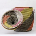 セネガルバスケット 蓋付きぷっくり細長カゴH55 黒
