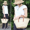 タザ縁レース編みドームかご 平革取手 S 薄茶