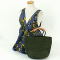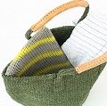 サイザルバッグ共手無地9インチ ハンドル革巻き ダークグリーン