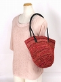 バナナxサイザルバッグ丸革ハンドル 大 ピンクミックス