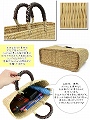 ストロー四角かご革クロスステッチハンドル S 焦げ茶
