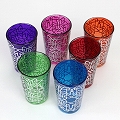 モロッコプリントグラス 1個売り 銀迷路 赤