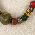 黄色ヘッドベネティア緑平ビーズネックレス 01 一点物