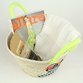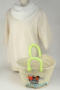 チュニジア刺繍バスケット S カルガモ ハンドルネオンイエロー