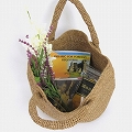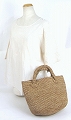 ラフィア編みバッグ ポット手提げ 草木染め ベージュ