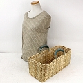 ストロー横長カゴ 大 革ハンドル マラカイト