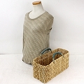ストロー横長カゴ 中 革ハンドル マラカイト