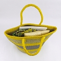 サイザルバッグ共手9インチ ミックス太ボーダー グレーx黄