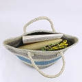 サイザルバッグ共手9インチ ミックス太ボーダー サックス