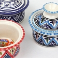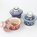 スラマ陶器 手描き蓋付ボウル D10 パピヨンブルー
