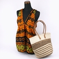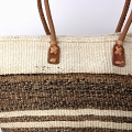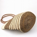 サイザルバナナバッグ10x12 丸革ハンドル 太細ボーダー 生成