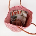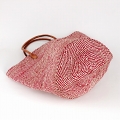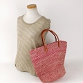 サイザルバッグ10x12 ミックス ピンク 丸革ハンドル赤茶