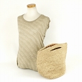 ラフィアバッグ 続きハンドル革付き