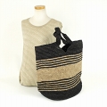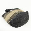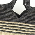 ラフィアかぎ編みバッグ 細ボーダーV型縁