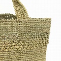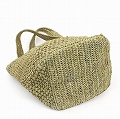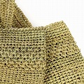 ラフィアかぎ編みバッグ 草木染真ん中ボーダーミニ 草ディンガディンガ緑