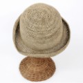 ラフィアかぎ編み帽子 縁ロール 男性用 紅茶