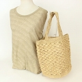 ラフィアかぎ編みバッグ 貝殻編み丸底