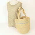 ラフィアかぎ編みバッグ 銀リボン編み込みナチュラル