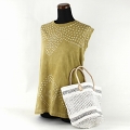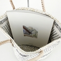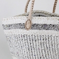 プラスチックバッグ9インチ 丸革ハンドル生成 ストライプ 白xシルバー