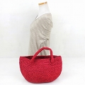 ラフィア編みバッグ ポット手提げ 磁石付 赤