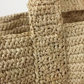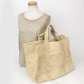 ラフィアかぎ編みバッグ 四角トート続きハンドル