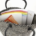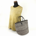サイザルバッグ10x12 ミックス 黒 丸革ハンドル黒