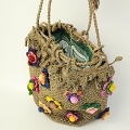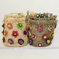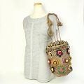 【SALE】ラフィアお花パッチワーク巾着 グレー @6000→4200