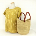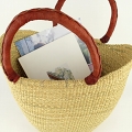 ボルガ丸底ニケフォルムバスケット M 無地 赤茶革ハンドル