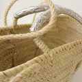 タザドームかご 革クロスステッチ サイザル紐付 SS シルバー