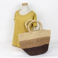 ラフィア編みバッグ 四角3色グラデ