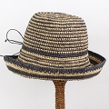 【SALE】ラフィア細編み帽子楕円 つば9.5 2トンボーダー @8500→6800