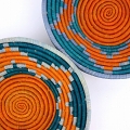 ウガンダバスケット 径25 花柄 水色オレンジ