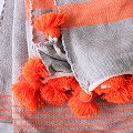 コットンx羊毛ブランケット 150x220 グレーxオレンジ 一点もの