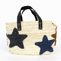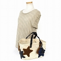 星モチーフかご 四角ミニ 黒平革ハンドル ダークグレーxキャメル