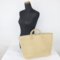 サイザルバッグ共手無地楕円トート横長16x6x12 カーキ