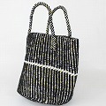 プラスチックアクリルサイザルバッグ共手9インチ ストライプ シルバーx黒