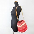 アクリルxサイザルバッグ9インチ スタンディングミックス 平革ストラップ 赤