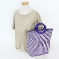 【SALE】ラフィアRARY 丸ハンドルミニバッグ 柄斜め 紫 @7000→4900