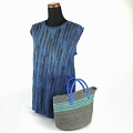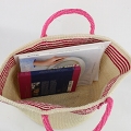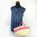サイザルバッグ12x8 ハンドル長 上ボーダー 生成xフシア プラハンドル短