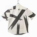 泥・藍染半袖シャツ M 筆描
