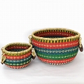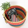 ボルガ伝統かご 大 ドットボーダー 赤マルチ