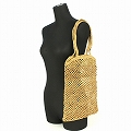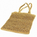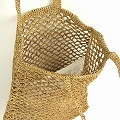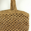 ラフィアかぎ編みバッグ 網透かしバッグぺたんこ 紅茶